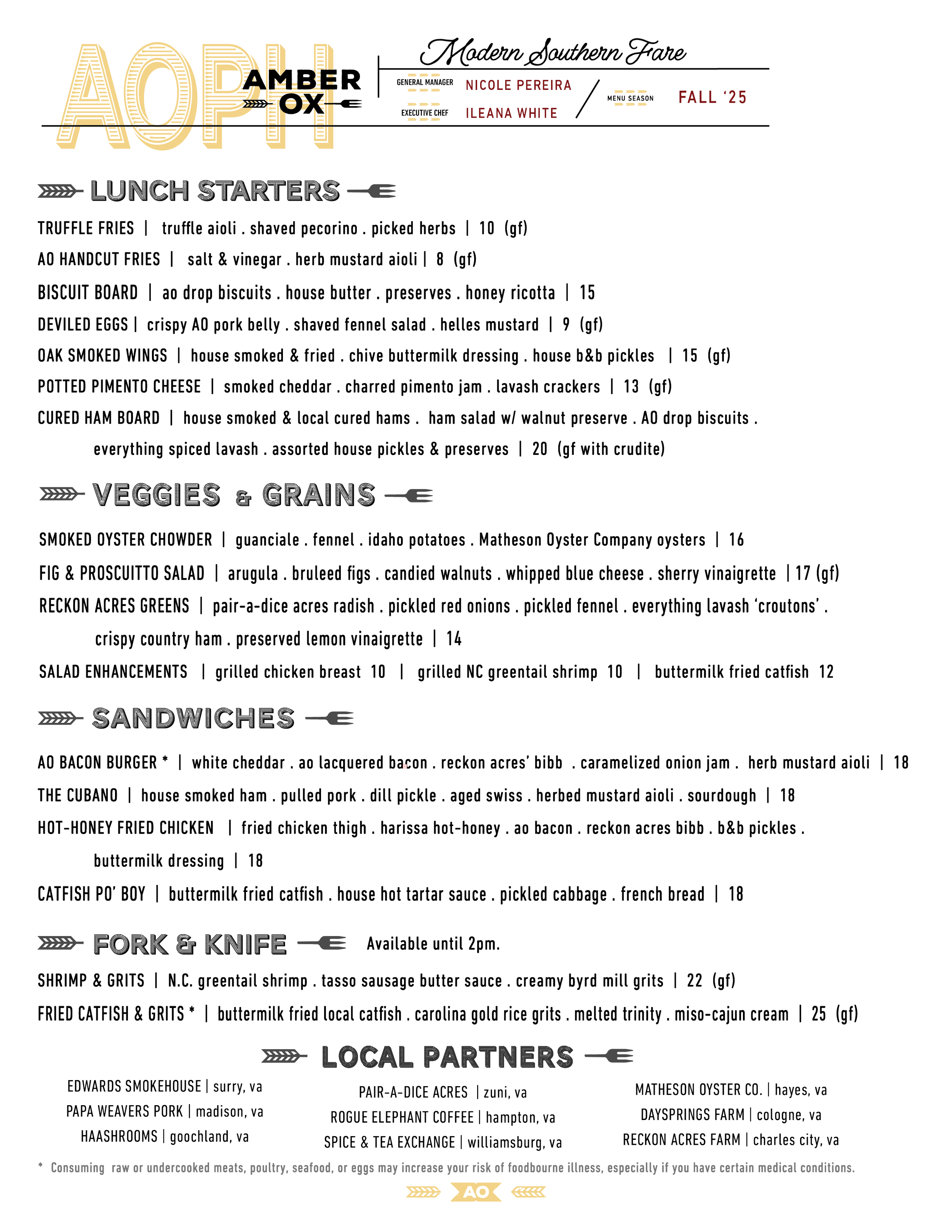 Menus are subject to change due to the available ingredients from our local farming partners.